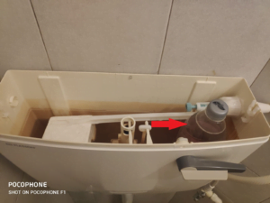 ניתן להקטין את השימוש במים גם על ידי הפחתת הכמות המים במיכל ההדחה .תמלאו את הבקבוק של 1.5ל במים ,תסגרו את הפקק ותכניסו לתוך המיכל. בגלל הנפח שתופס הבקבוק יש במיכל פחות 1.5 ליטר של מים. כלומר כל פעם שתורידו מים תחסכו 1.5 ליטר.